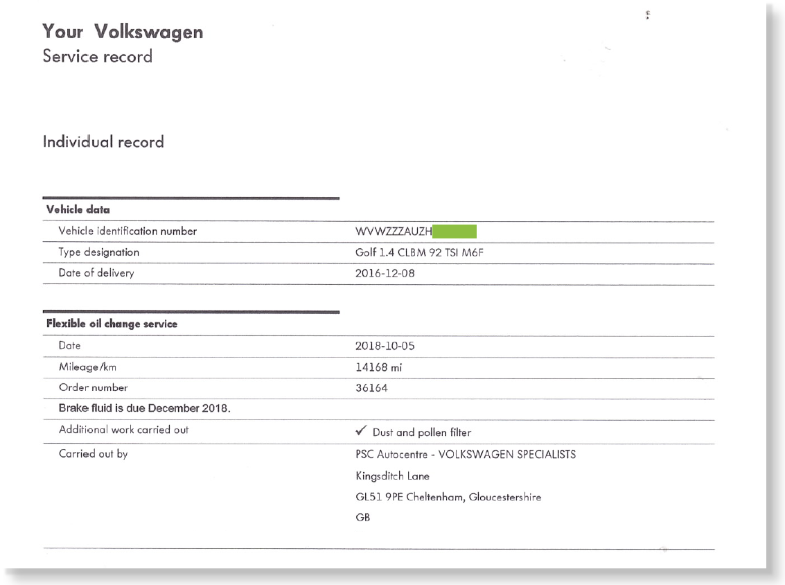 Via our registered access to the VW service history portal we are able to fully update your online digital service record, keeping your online digital service history up to date.